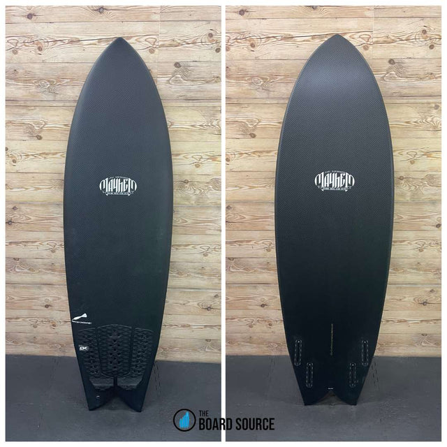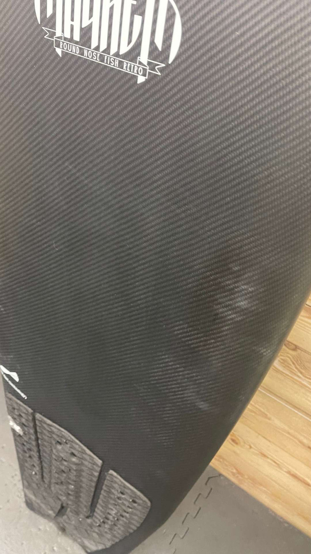 Condition: Excellent condition, lightly ridden with some mild deck pressures - a couple of small cosmetic scuffs/scratches to the finish that show up agains the black carbon color. One tiny under-the glass shatter on the rail