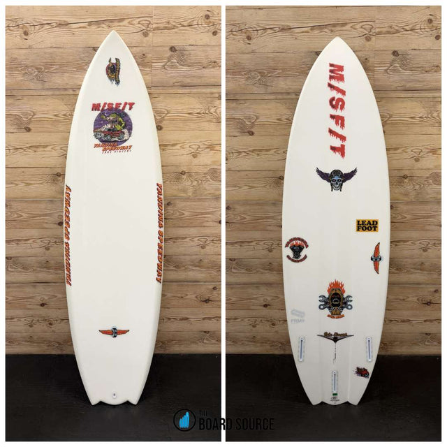 OG M/SF/T family JAKE VINCENT’s signature model, the Yandina Speedway is Queensland engine culture and hellman spirit all packaged into one muscly beast of a surfboard. For those who desire to surf like Vin; animated, untamed, progressive, and unpredictable look no further than the Yandina Speedway. The model bears a lot of similarities to Vin’s previous chariots of choice, with a similar wide nose and tail that draw the rail line out, making it more parallel to create maximum speed + drive. Lismore levels of speed + lift are also derived from a quad channel bottom which projects water out the tail. The tail also harnesses another previously proven element, the domed swallow, which in short, promotes speed and release, while maintaining control, especially in a reversed position. Most of this board’s big Vin energy is in its deck and rails. The deck is fully flat, in fact it goes beyond into a subtle concave, which creates a more sensitive surfing feel; as one’s feet are almost closer to the water and fi n area. Toward the tail this then moves into a slight double concave for comfort and grip while shuvving and revving. This is all finished off with chimed rails to propel water off the deck and create shapely rails that penetrate the wall of the wave without biting. The last element, which is oh so important, is the 13 hand-drawn decals by the iconic Australian punk artist BEN BROWN that are guaranteed to make this board un-noticeable to none. As one can see she is wild beyond belief, but on a technical level this board is the evolution and next generation of the MK/ DD series, which has been years of design and research in planning hulls, channels, parallel outlines, water displacement and timeless surfboard design.
