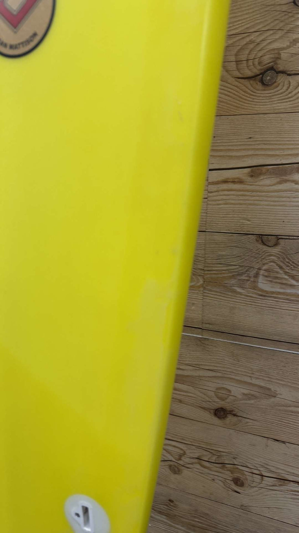Condition: Great condition with mild pressures on the deck and bottom. A couple of small professional repairs on the rail at the tail and a couple of small under-the-glass shatters on the rail.