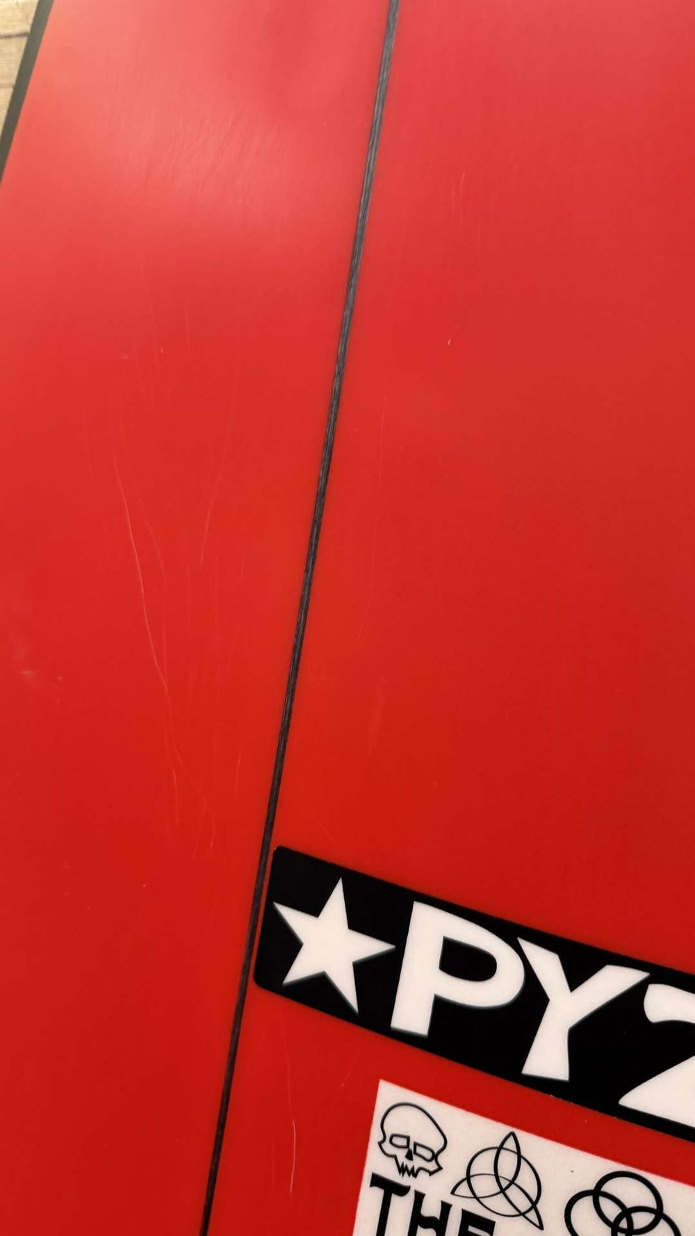 Condition: Great condition with mild underfoot deck pressures and a few small scattered ones on the bottom. A small repair to a shatter on the tip of the tail and some mild cosmetic scuffs/scratches to the finish.