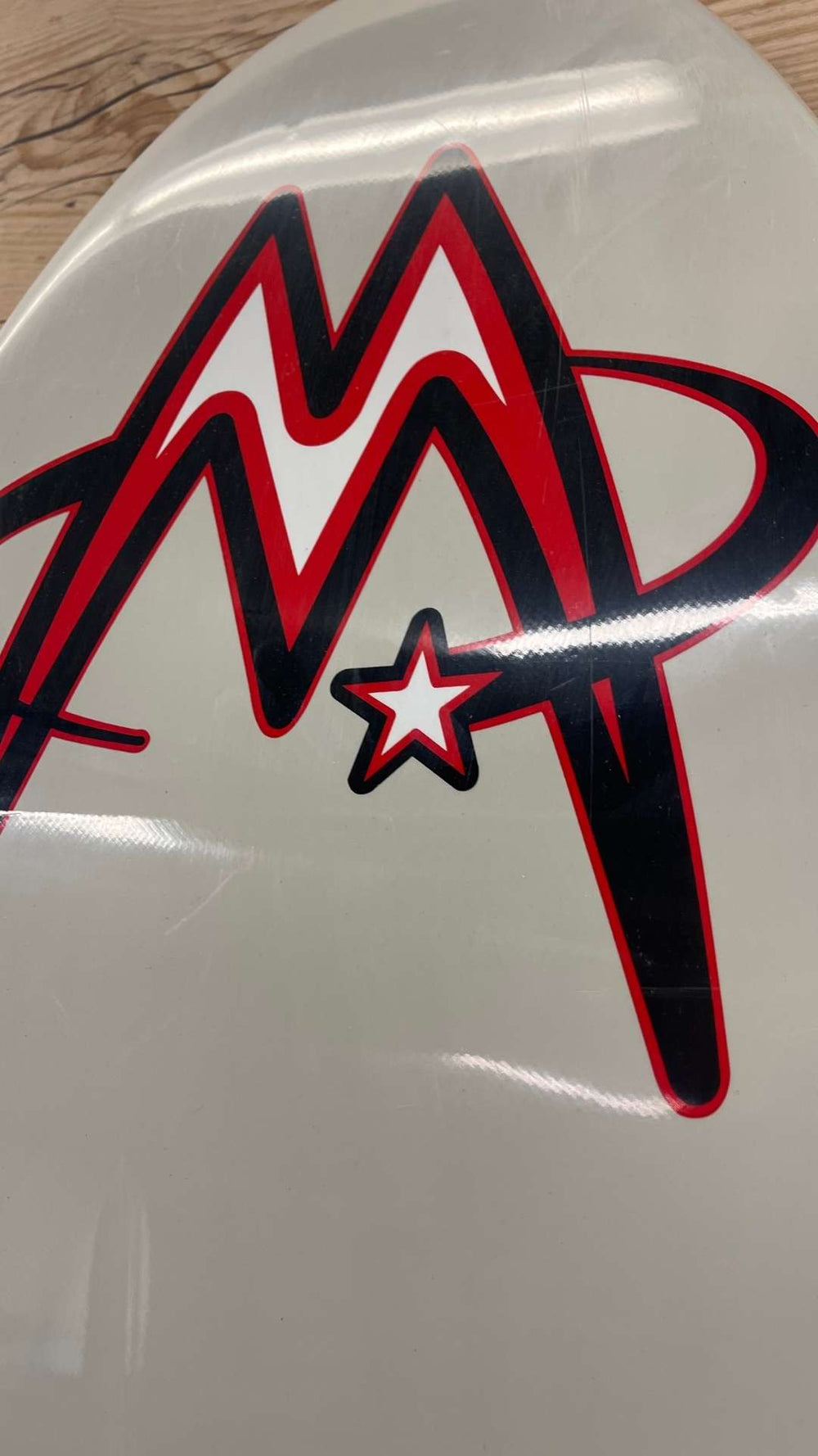 Condition: Good condition - mild pressures top and bottom. Some scuffs and scratches to the outer paintwork on the nose, tail and rails. A small stress mark on the bottom of the board by the nose.