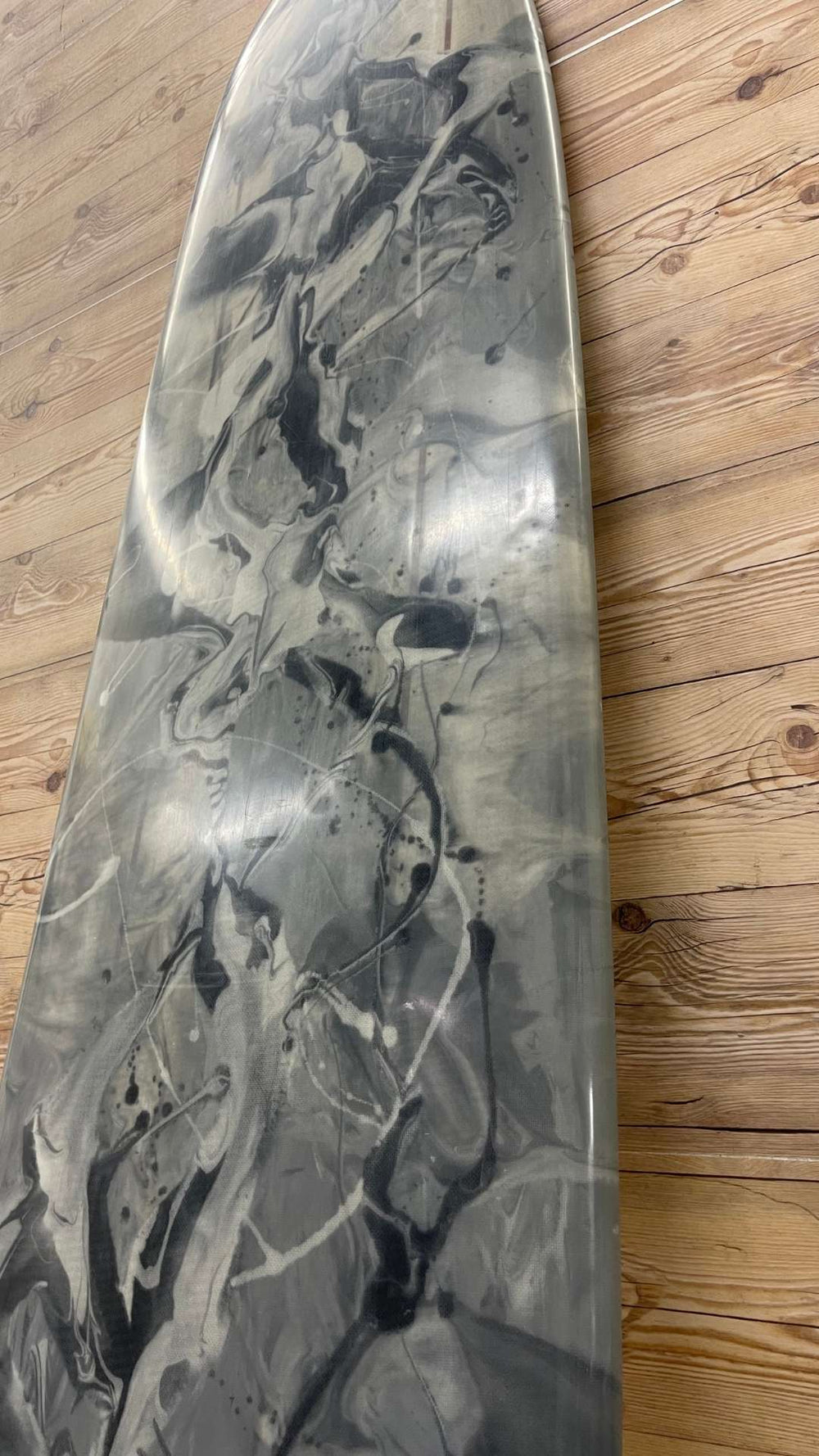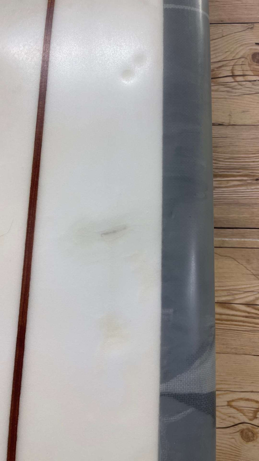 Condition: Good condition with moderate deck pressures. A handful of professional repairs on the deck , bottom and rail. Fin box has been professionally repaired. Moderate cosmetic scuffs/scratches to the finish. Well used and loved but plenty of life left. inthe one. Watertight and ready to glide.
