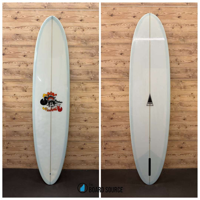 Condition: Great condition with moderate deck pressures at the tail of the board from normal use. There are a few cosmetic shatters along the stringer and by the leash loop in the gloss coat that are watertight. Some mild cosmetic scuffs/scratches to the finish